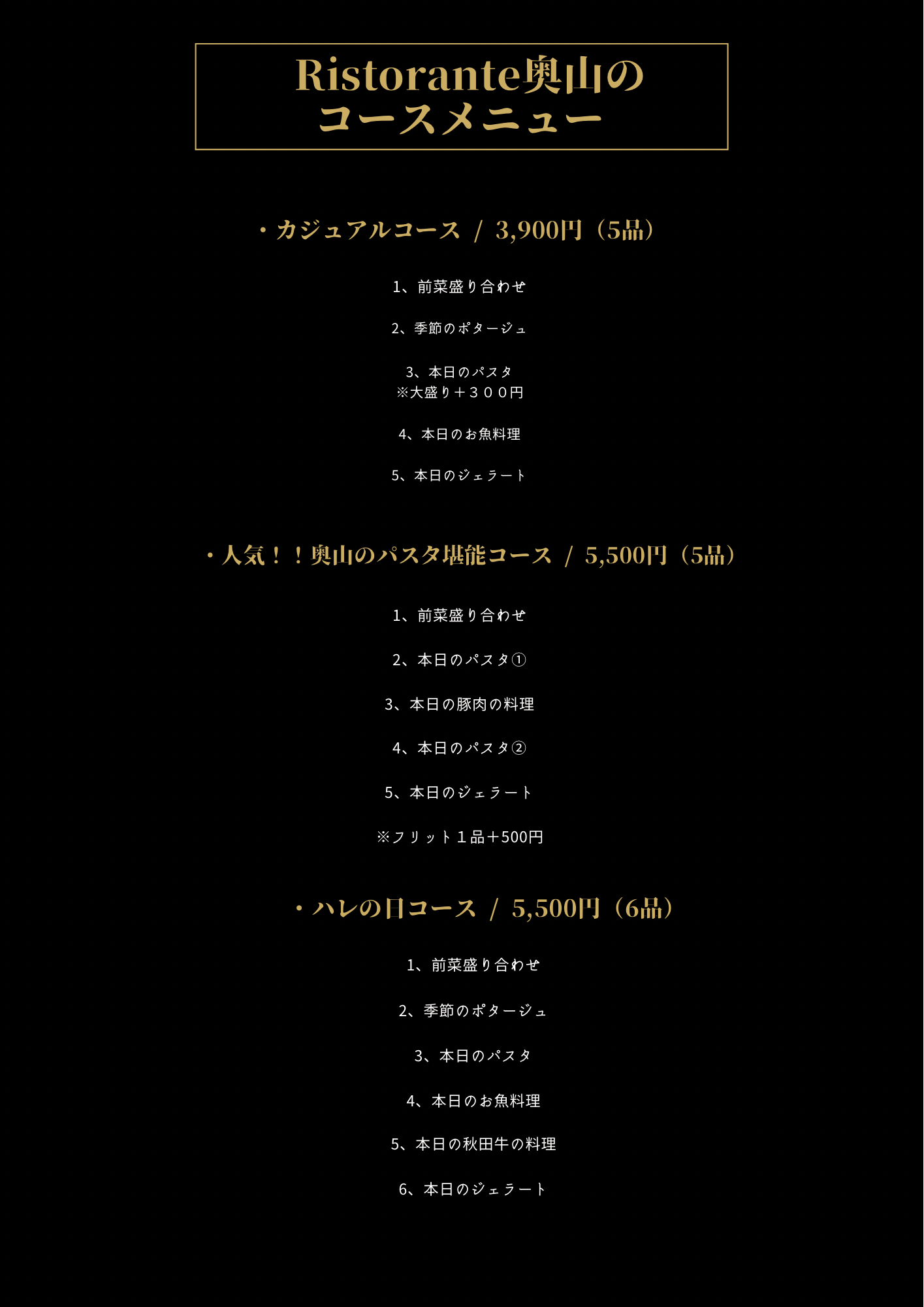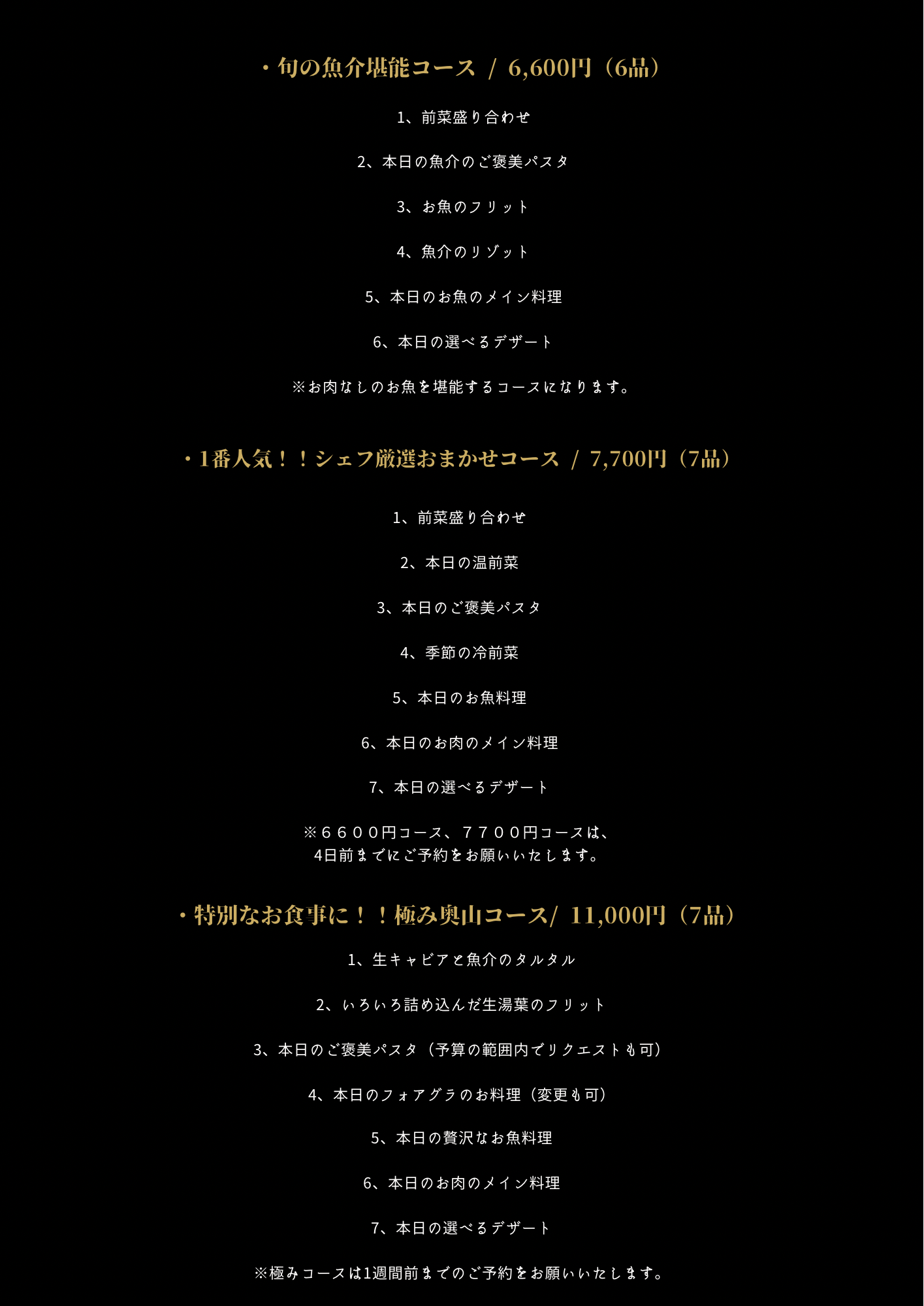 期日までにご連絡くださいませ。 - ディナータイムはコース料理のみ、